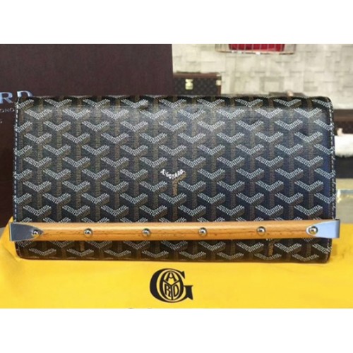 Goyard Chevron Monte Carlo Bois Clutch in zwart met bruine lederen afwerking