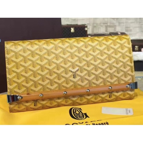 Goyard Chevron Monte Carlo Bois Clutch Geel