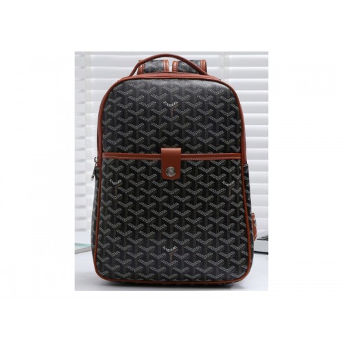 Goyard Saint Sulpice rugzak, zwart met bruine leren afwerking.