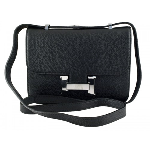 Hermes Constance 23 schoudertas, Togo leer, zwart