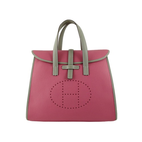 Hermes 08c Flap Bag Roze met Grijze Lederen Afwerking