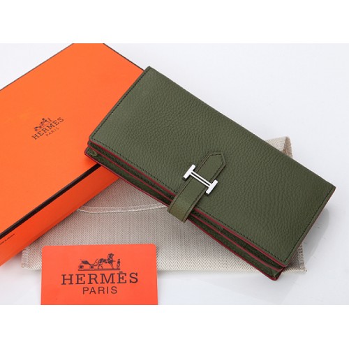 Hermes Dogon Togo Original Calfskin Bearn Japonaise Bi-Fold Wallet Olive