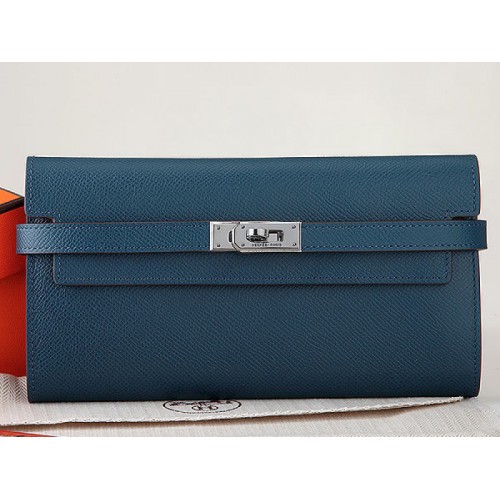 Hermes Epsom Original Kalfsleren Kelly Lange Portemonnee Donkerblauw