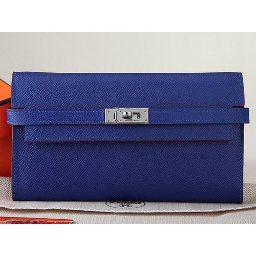 Hermes Epsom Original Kalfsleren Kelly Lange Portemonnee Elektrisch Blauw