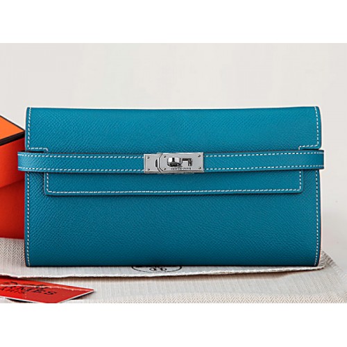 Hermes Epsom Original Kalfsleren Kelly Lange Portemonnee Medium Blauw