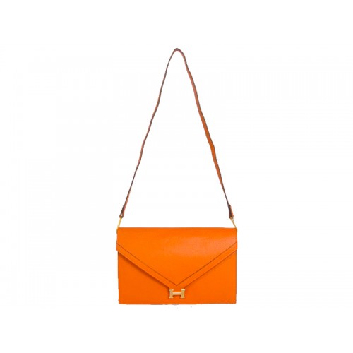 Hermes Pilot Envelope Clutch Oranje met goudkleurige hardware