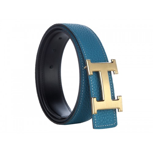 Hermes Togo leren riem met gouden H-gesp, blauw