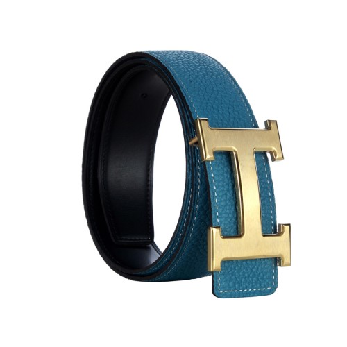 Hermes Togo leren riem met gouden H-gesp, blauw/zwart