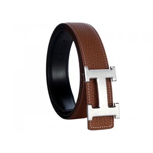 Hermes Togo leren riem met zilveren H-gesp, bruin