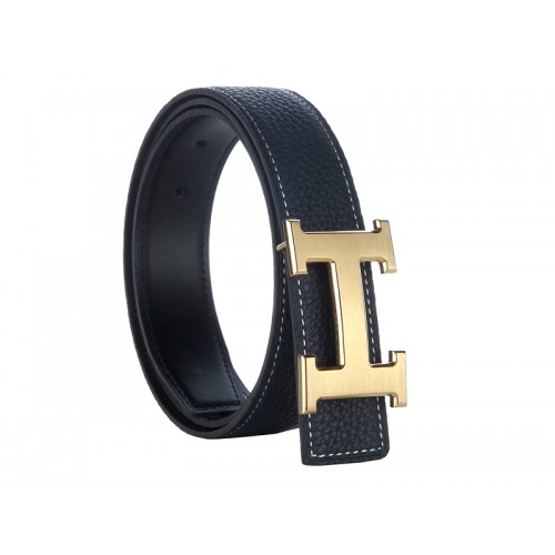 Hermes Togo leren brede riem met gouden H-gesp, zwart