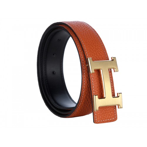Hermes Togo leren brede riem met gouden H-gesp in baksteenkleur.