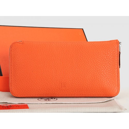 Hermes portemonnee met rits, origineel leer, oranje