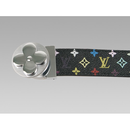 Louis Vuitton zwarte Multicolore riem met ronde bloemvormige zilverkleurige gesp