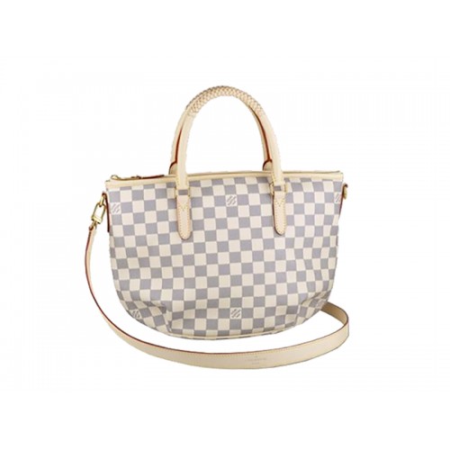 De Louis Vuitton Damier Azur Riviera Bag is een draagtas met gevlochten dubbele handgrepen. Het wordt geleverd met een afneembare schouderriem. Verkrijgbaar in twee maten, MM en PM.
