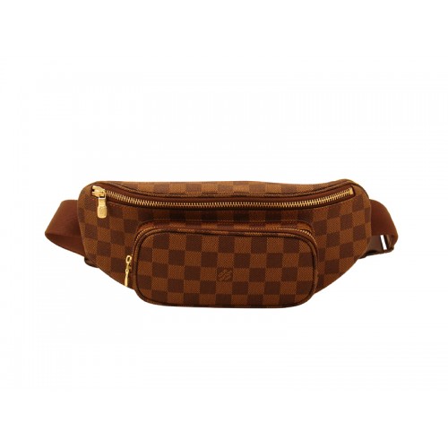 Vlechter canvas met gladde donkere chocolade lederen bies