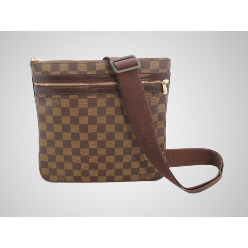 Louis Vuitton presenteert een licht en praktisch plat zakje in Damier canvas, perfect voor gebruik in de stad of op reis. Een zak met ritssluiting aan de voorkant biedt gemakkelijke toegang tot de mobiele telefoon, iPod of andere accessoires, terwijl het hoofdcompartiment met rits al uw dagelijkse of reisbenodigdheden bevat.