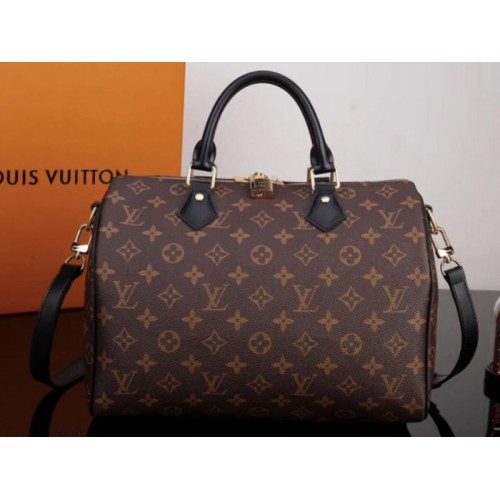 Louis Vuitton Monogram Canvas Speedy Bandoulière 30 met zwarte leren afwerking
