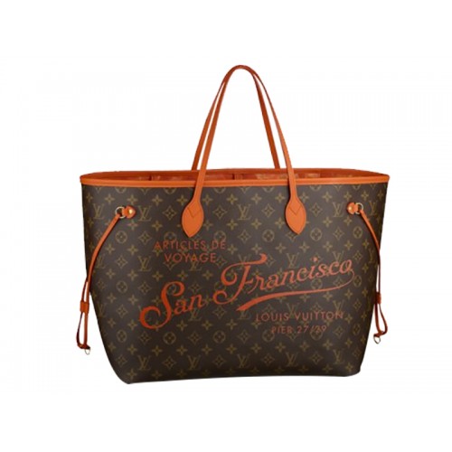 De geest van de zomer vastleggen.Louis Vuitton herinterpreteert zijn iconische neverfull als eerbetoon aan 's werelds meest gevierde resorts San Francisco. Vintage-stijl letters .oranje leren bekleding en een bloemen Ikat print voering dragen bij aan de aantrekkingskracht van deze limited-edition holdall (waarvan de praktische kenmerken en genereuze verhoudingen maken het de perfecte keuze voor zowel stad als strand .