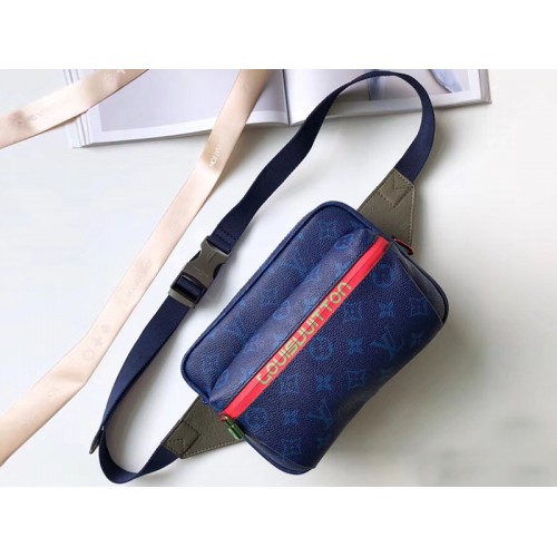 Eilandkleuren en een sportieve buitenstemming komen samen in deze bumbag, gemaakt van soepel Monogram canvas geaccentueerd met textiel en lederen bekleding. De metalen fittingen geven een speelse toets aan dit functionele stuk, een stijlvolle manier om essentials op te bergen, handsfree.