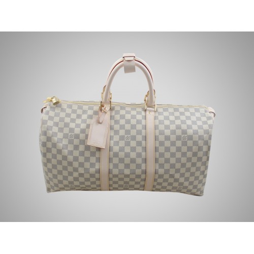 Gecreëerd in 1924, is de Keepall de moderne voorouder van de hold all. Het is zeer soepel en ruim en wordt geleverd in Damier Azur canvas met een dubbele ritssluiting en afneembaar naamplaatje.