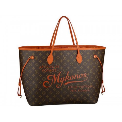 de geest van de zomer.Louis Vuitton herinterpreteert zijn iconische neverfull als eerbetoon aan 's werelds meest gevierde resorts Mykonos.vintage-stijl letters .oranje leren bekleding en een bloemen Ikat print voering dragen bij aan de aantrekkingskracht van deze limited-edition holdall (waarvan de praktische kenmerken en genereuze proporties het de perfecte keuze maken zowel stad als strand .