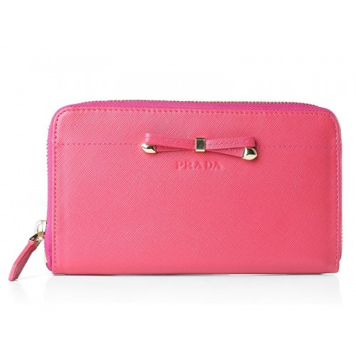 Prada Saffiano Zippy portemonnee met strikdetail, felroze