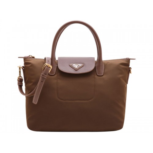 Prada Tessuto nylon tas met leren afwerking, bruin
