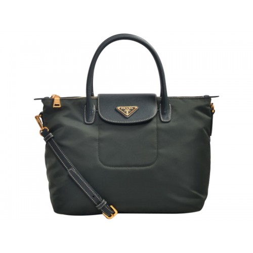 Prada Tessuto Nylon Tote met leren afwerking, donkergroen