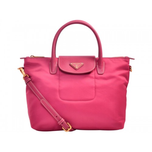 Prada Tessuto Nylon Tote met leren afwerking, felroze