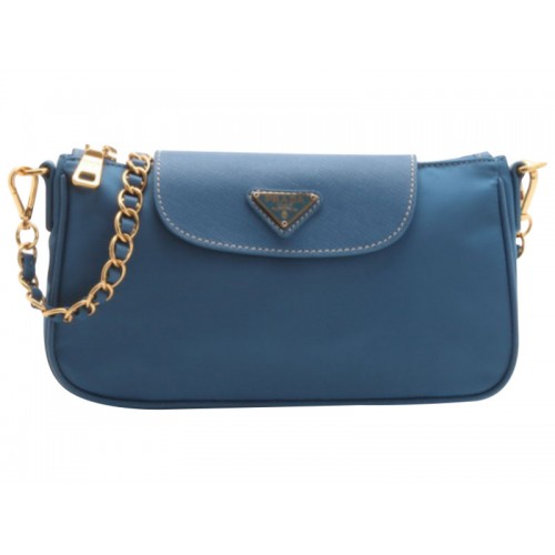 Prada Tessuto Nylon Polstasje met Saffiano Lederen Polsbandje Blauw