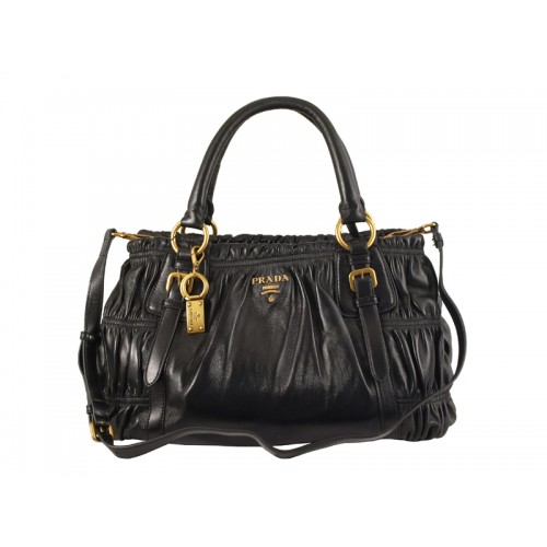 Prada Nappa Gauffre Horizontal Antic Satchel Zwart