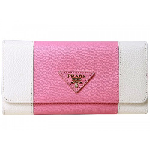 Prada Saffiano leren drievoudige portemonnee wit met roze
