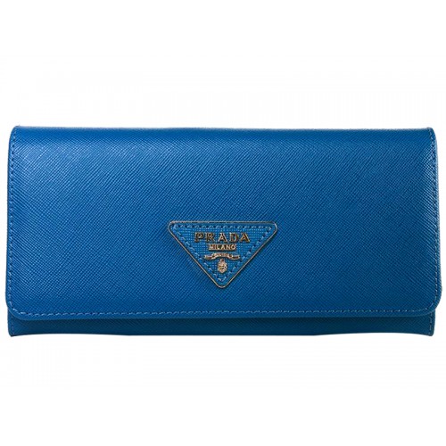 Prada Saffiano leren portemonnee met driehoekig logo, blauw
