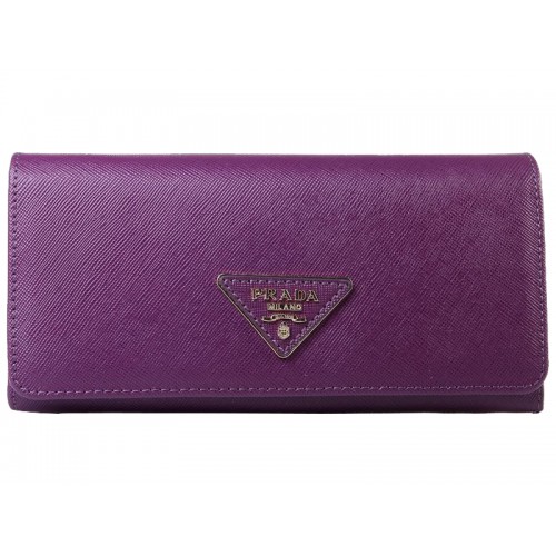 Prada Saffiano leren portemonnee met driehoekig logo, paars