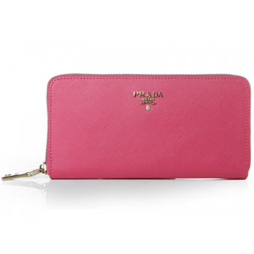 Prada Saffiano Zippy portemonnee in felroze