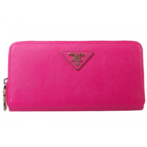 Prada Saffiano Zippy portemonnee met driehoekig logo in felroze