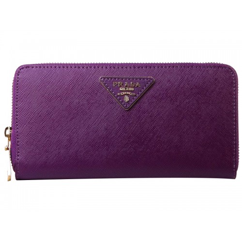 Prada Saffiano Zippy portemonnee met driehoekig logo, paars