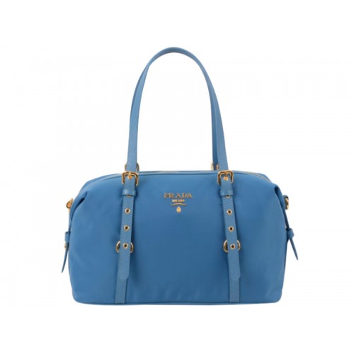 Prada Tessuto Bauletto Satchel Schoudertas Blauw