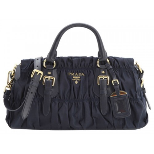 Prada Tessuto Gaufre Nylon Handtas met Bovenhandvat, Donkerblauw