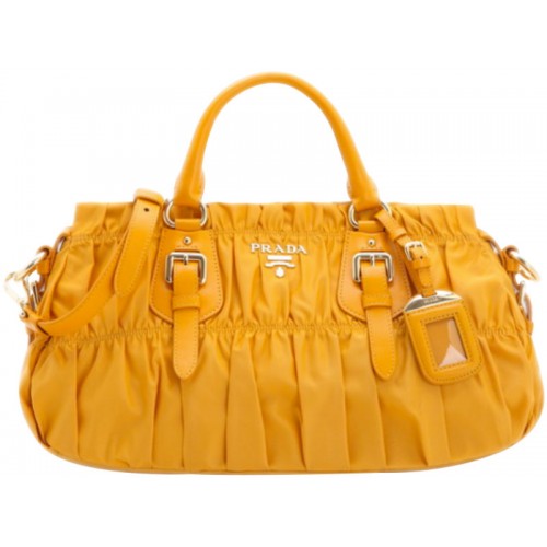 Prada Tessuto Gaufre Nylon Handtas met Bovenhandvat, Geel