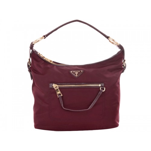 Prada Tessuto nylon hobo tas met leren afwerking, bordeauxrood