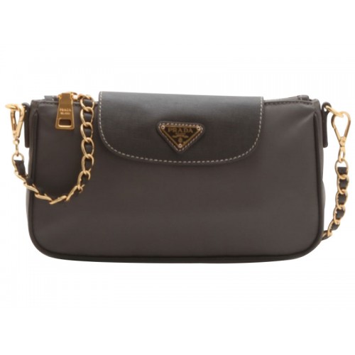 Prada Tessuto Nylon Polstasje met Saffiano Lederen Polsbandje Grijs