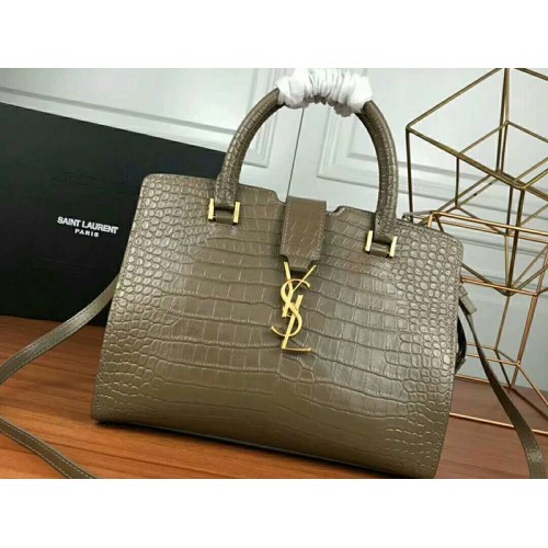 Saint Laurent Cabas YSL Small in glad leer, grijs