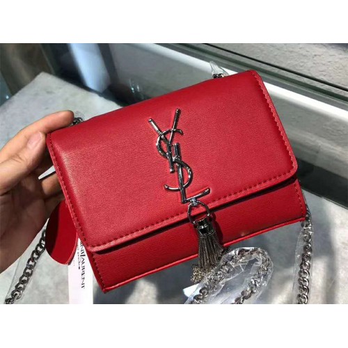Saint Laurent Kate Chain Wallet van kalfsleer, rood