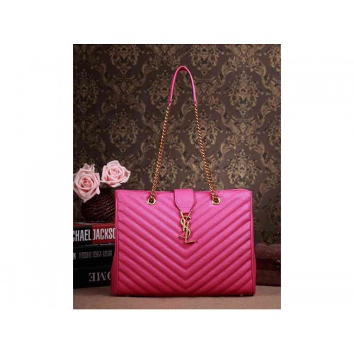 Yves Saint Laurent Classic Monogram Shopping Bag in Lipstick Fuchsia Grain de Poudre Textured Quilted Leather