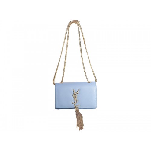 Yves Saint Laurent Mini Monogram Tas in origineel leer, lichtblauw