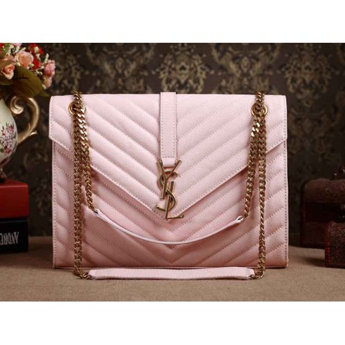 Yves Saint Laurent klassieke grote monogramtas in roze Grain de Poudre getextureerd matelasse leer