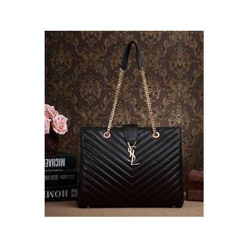 CLASSIC SAINT LAURENT SHOPPER TOTE MET METALEN KETTING, LEREN DUBBELE HANDVATTEN EN IN ELKAAR GRIJPENDE YSL SIGNATURE GESPSLUITING.